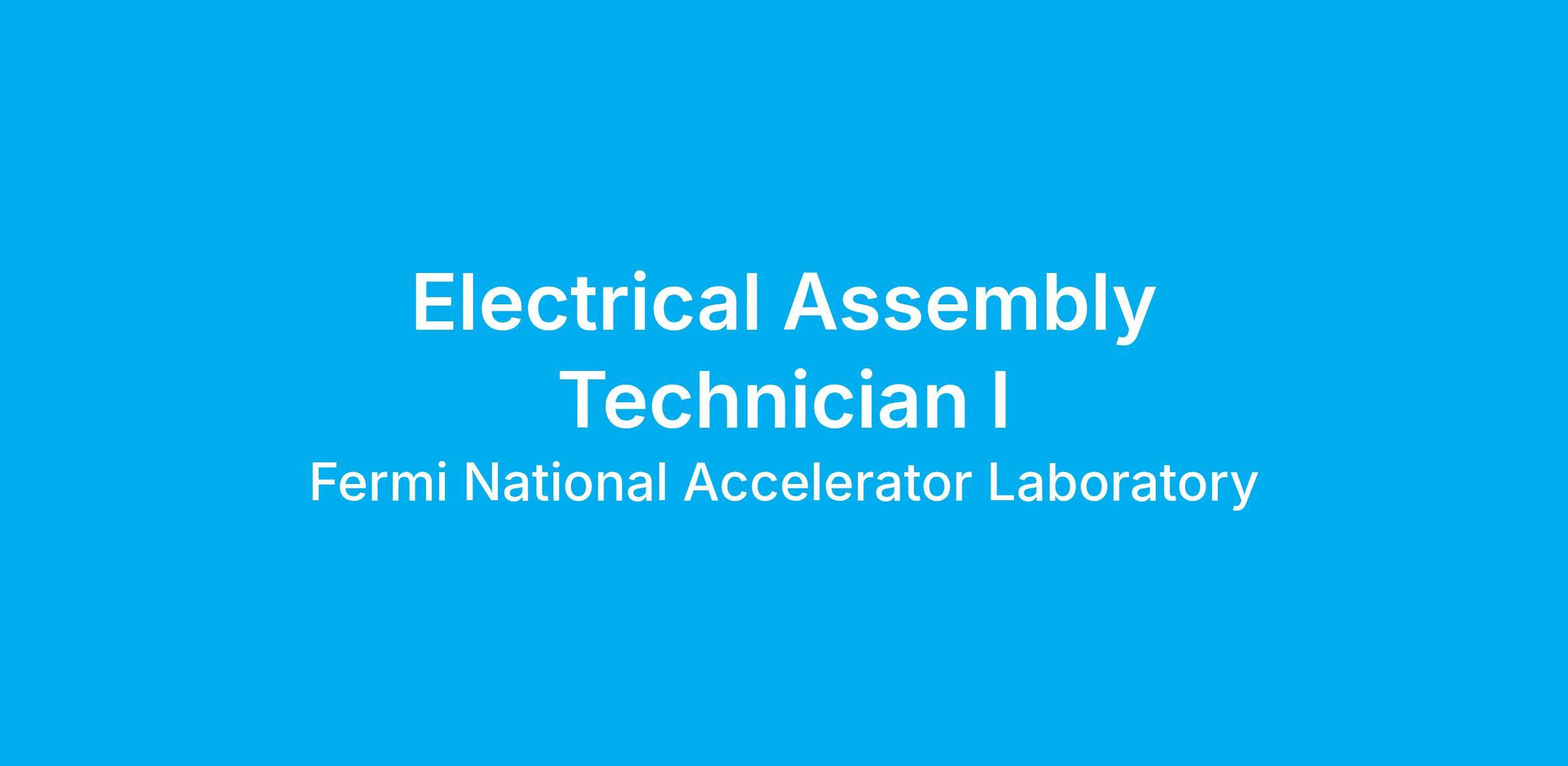 The Fermilab Particle Physics Division (PPD) seeks an Electrical Assembly Technician I to support and rapidly growing project needs. Under direct supervision, provides routine technical support for an assigned area, typically an experimental or support group.