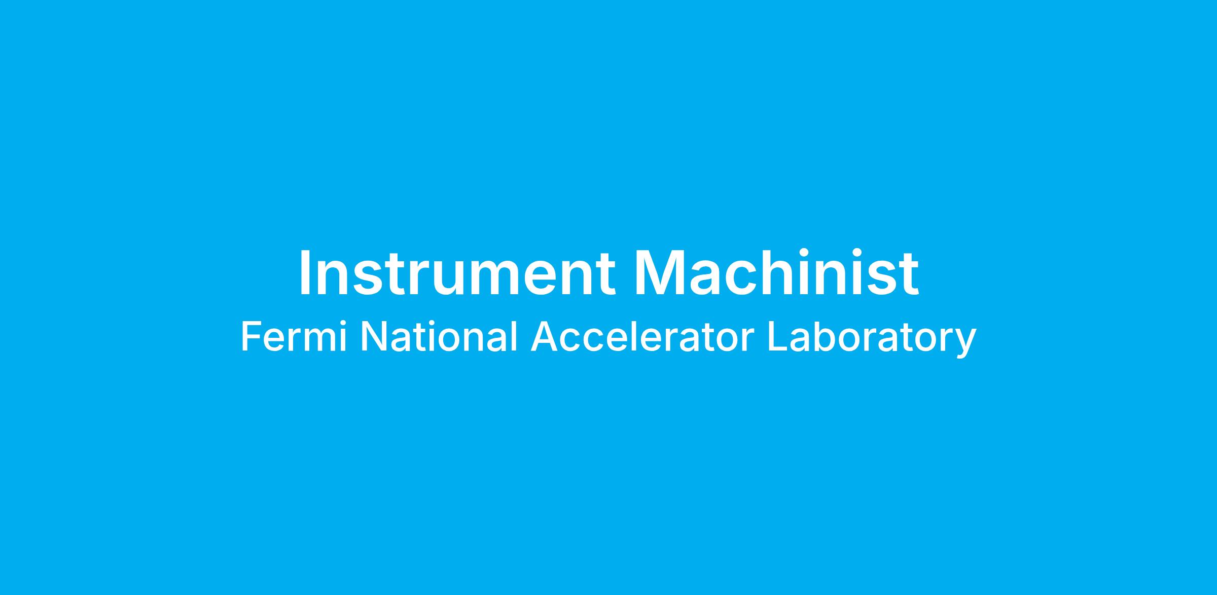 Fermilabβs Machine Shop Department is seeking a full-time Instrument Machinist to join the team. Under general supervision, provides the provisioning of high-quality machine services in all laboratory environments.