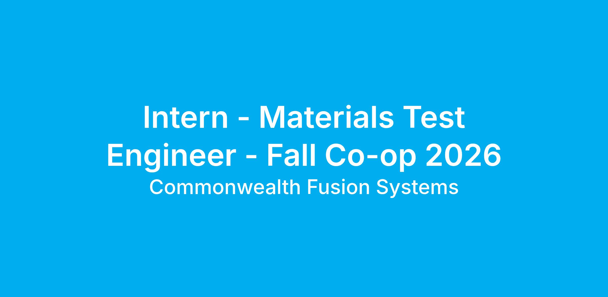 The CFS Materials Team is seeking a motivated Materials Test Engineering Intern to join our cutting-edge team. In this role, you will support the development and testing of advanced materials critical to key tokamak systems such as plasma-facing components, the vacuum vessel, and high field magnets. This is a unique opportunity to work at the forefront of sustainable energy innovation in a collaborative, fast-paced R&D environment.