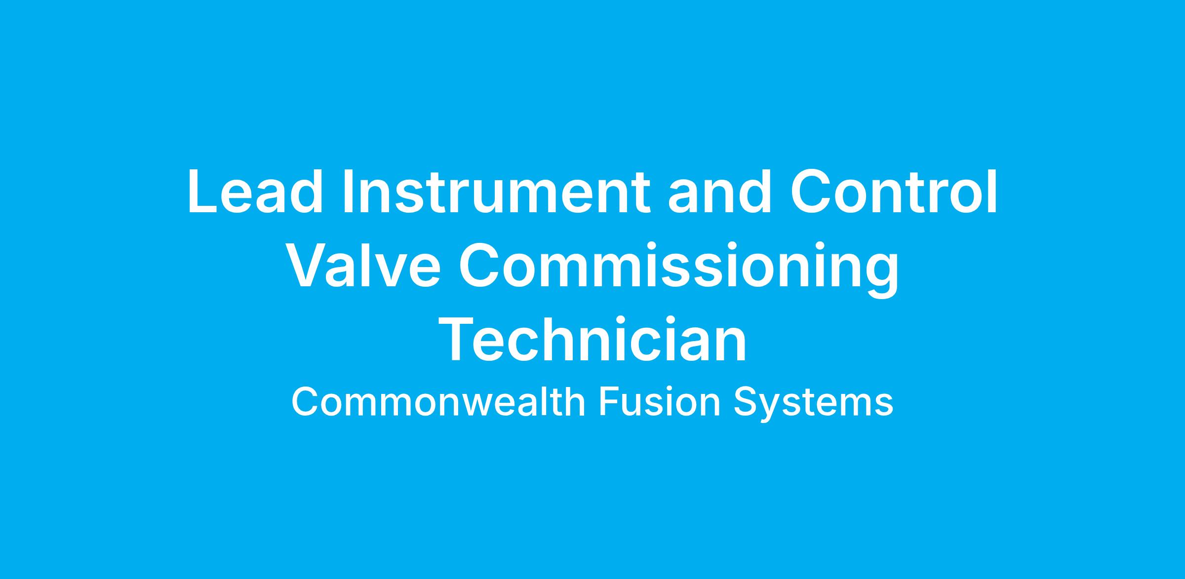 Lead Instrument and Control Valve Commissioning Technician