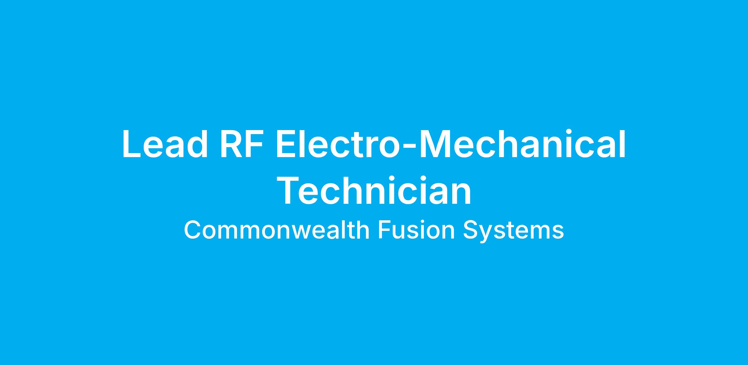 We are seeking a highly motivated Lead RF Electro-Mechanical Technician to join our team of physicists, engineers, and technicians in our core mission: accelerating the development of fusion energy.