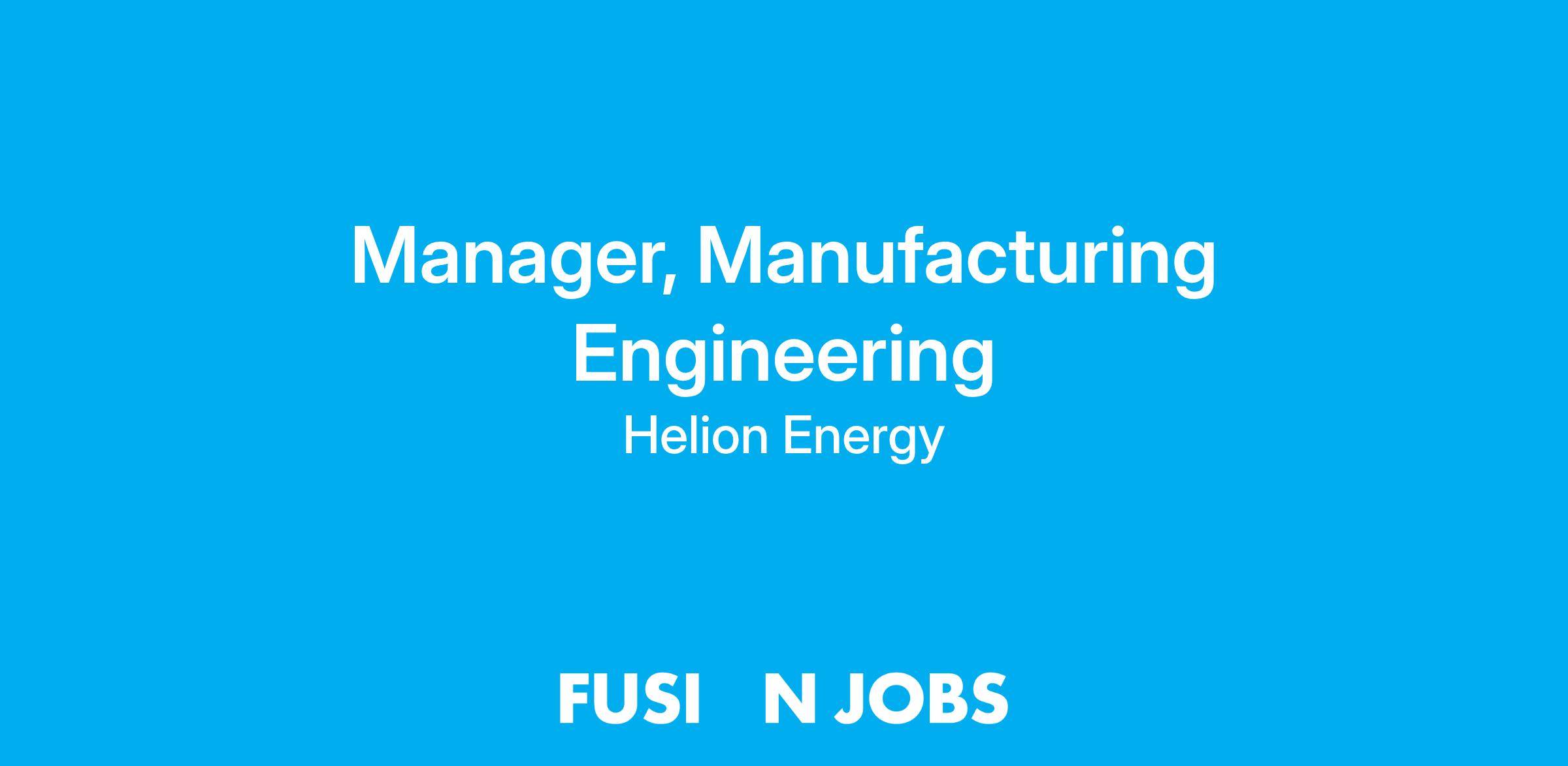 We are hiring a Manager of Manufacturing Engineering to lead the build and testing of prototype designs for Helion's fusion generators. In this role, you will solve a wide range of high-impact challenges that directly affect the performance and scalability of our technology. You'll be responsible for hiring and mentoring top engineering talent, developing innovative manufacturing processes, and accelerating Helion's pace of innovation. Your leadership will shape how we design and operate prototype production lines—setting the standard for delivering clean, low-cost, and reliable electricity to the world. Key responsibilities include building a world-class team, driving complex projects, modeling technical excellence, and establishing best practices in production. This is an onsite role reporting to the Director of Capacitor Manufacturing at our Everett, WA office.