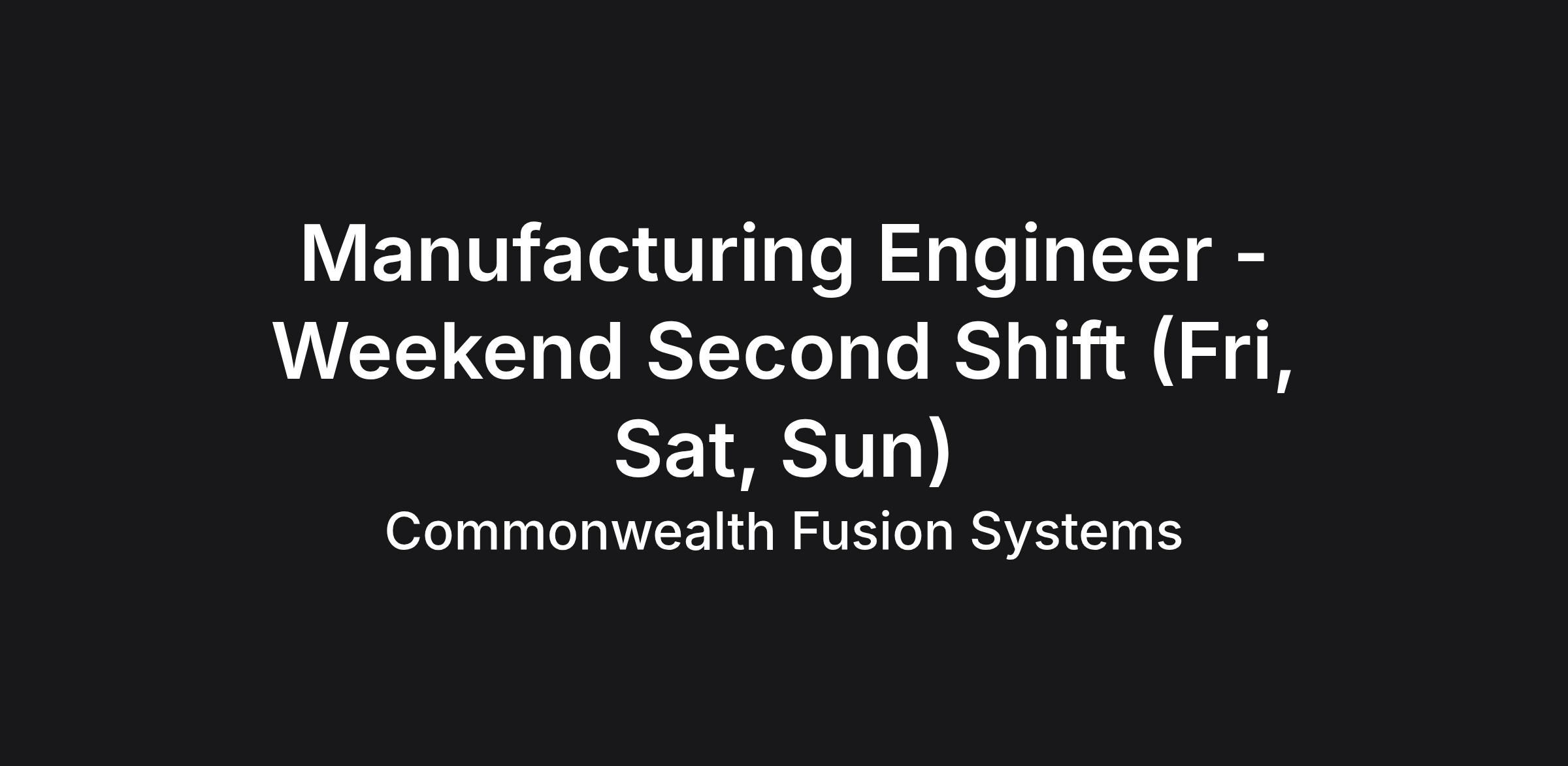 We are looking for a hands-on Manufacturing Engineer to captain our weekend operations. You will be the technical anchor for the "5th Shift," ensuring that our production of high-temperature superconducting magnets continues safely and efficiently when the weekday engineering team is offline.