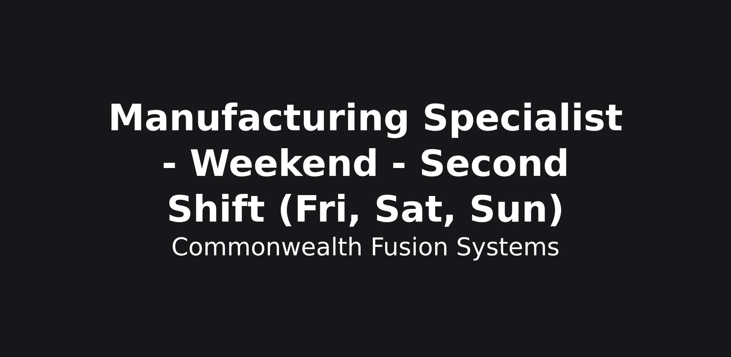 Manufacturing Specialist - Weekend - Second Shift (Fri, Sat, Sun)