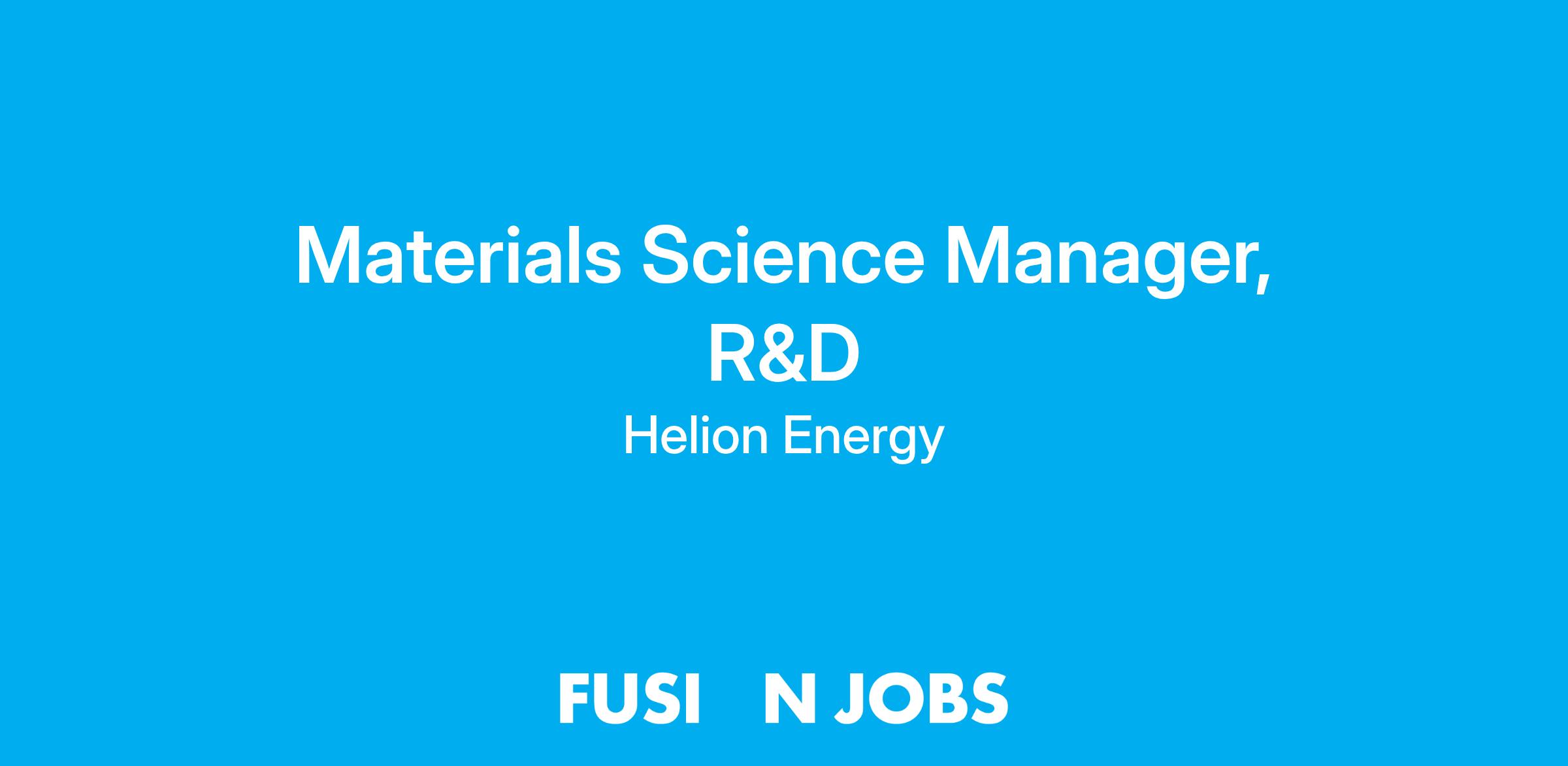 You will lead Helion’s R&D Materials Science team with a strong focus on developing and deploying critical capabilities that enable the design, testing, and monitoring of materials for extreme environments. You will oversee the delivery of key R&D tools and guide a team of subject matter experts to meet Helion’s materials innovation goals. This is an onsite role that reports directly to Director of Materials Science at our Everett, WA office.