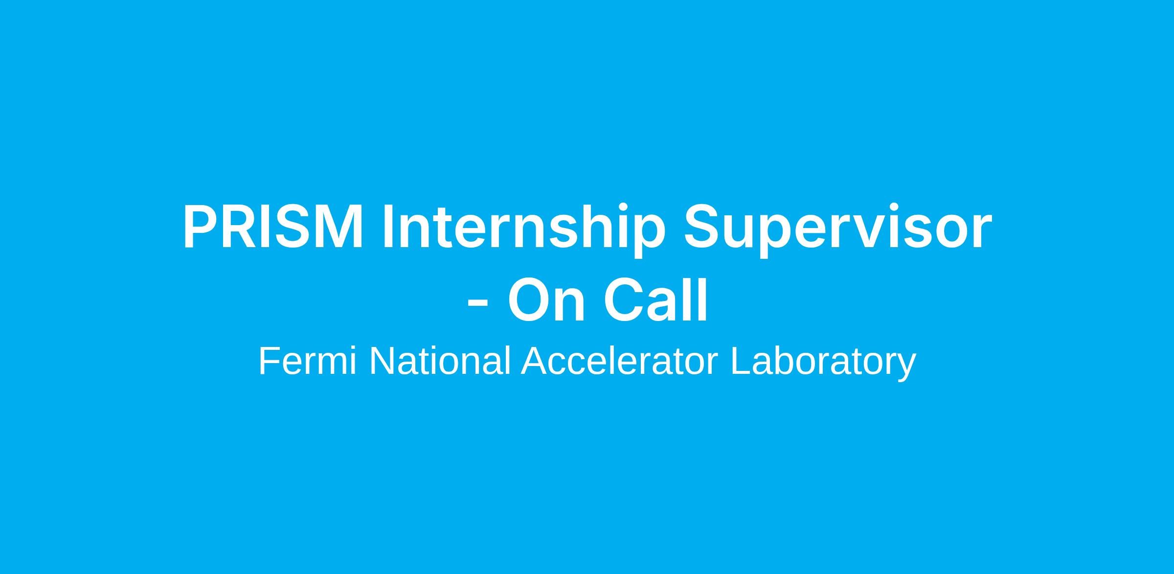 Fermilab is seeking an Internship Supervisor – On Call for "The Fermilab Program for Research, Innovation, and STEM Mentorship (PRISM)" designed for rising high school seniors or recent high school graduates. The supervisor will play a crucial role in ensuring the smooth and effective operation of the program, fostering a positive learning environment, and supporting the overall experience of participating students.