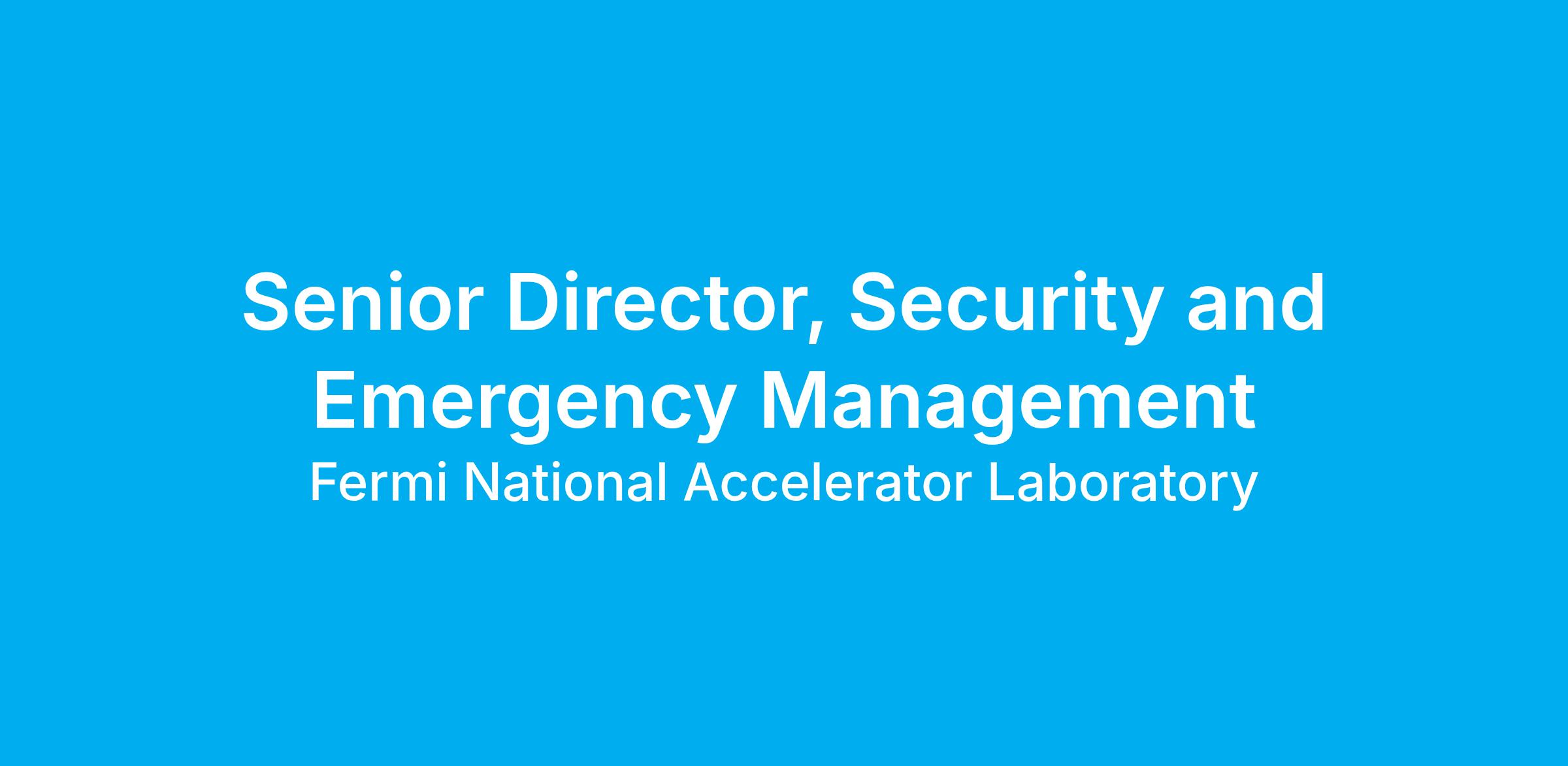 The Senior Director of Security and Emergency Management Division (SEMD) is responsible for developing and leading programs for safeguards and security, emergency management, and cybersecurity to ensure the safety and security of the Laboratory’s employees, users, affiliates, visitors, and physical and information assets. The SEMD Senior Director reports directly to the Deputy Director for Operations (DDO)/Chief Operating Officer (COO) and is a member of the Laboratory’s Senior Leadership Team. The position is responsible for leading security operations, protective force, security engineering, global services and campus access, fire department, emergency management and operations and cyber security for the 6,800-acre Batavia, Illinois site and the Lead, South Dakota Far Site, which is the location of the new Long Baseline Neutrino Experiment – Deep Underground Neutrino Experiment (LBNF-DUNE). The position collaborates with internal and external stakeholders on security matters to develop and implement security and cybersecurity strategies, policies and procedures, including sensitive information and data, and intellectual property in alignment with regulations for federal property