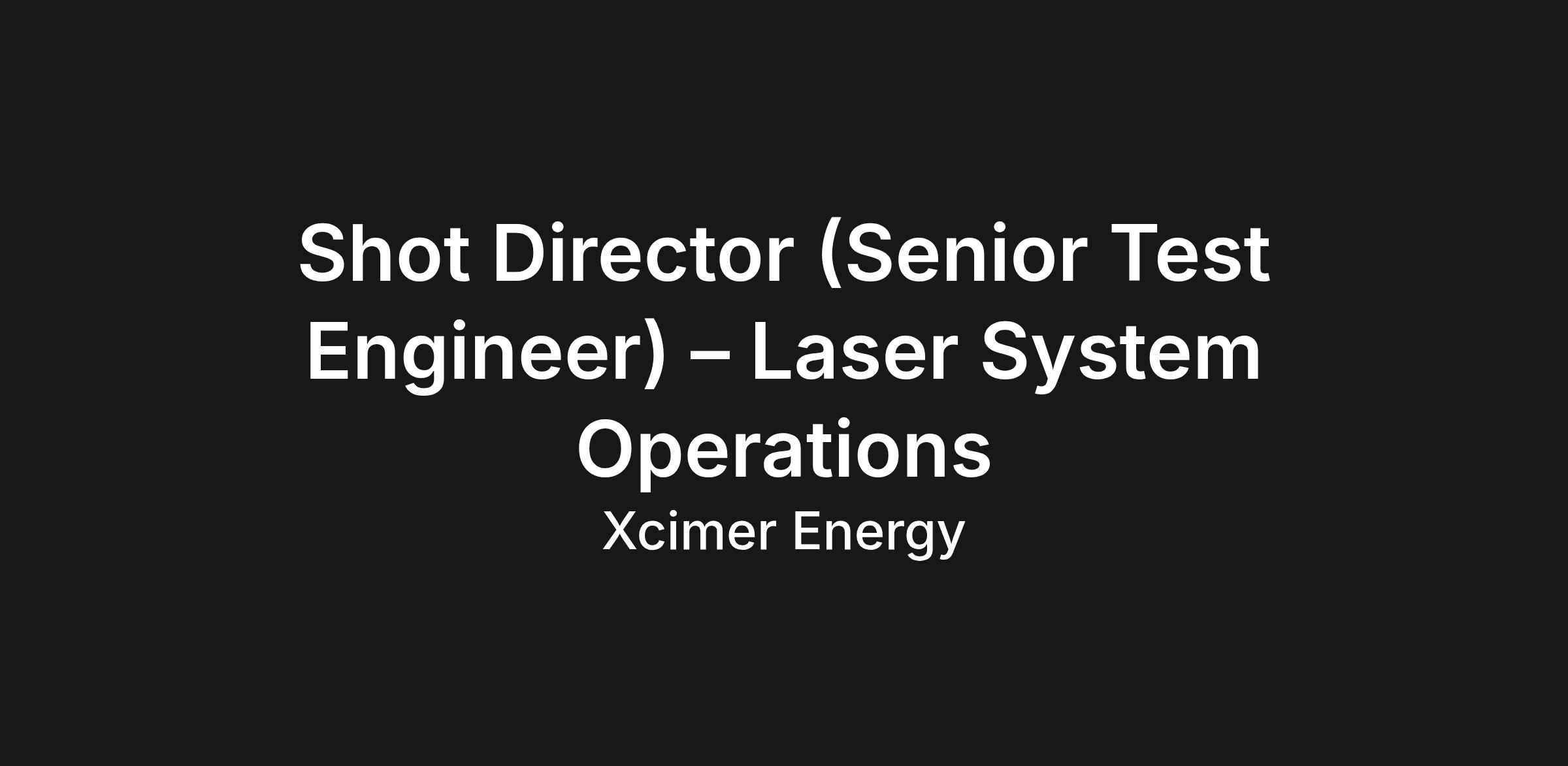 Shot Director (Senior Test Engineer) – Laser System Operations