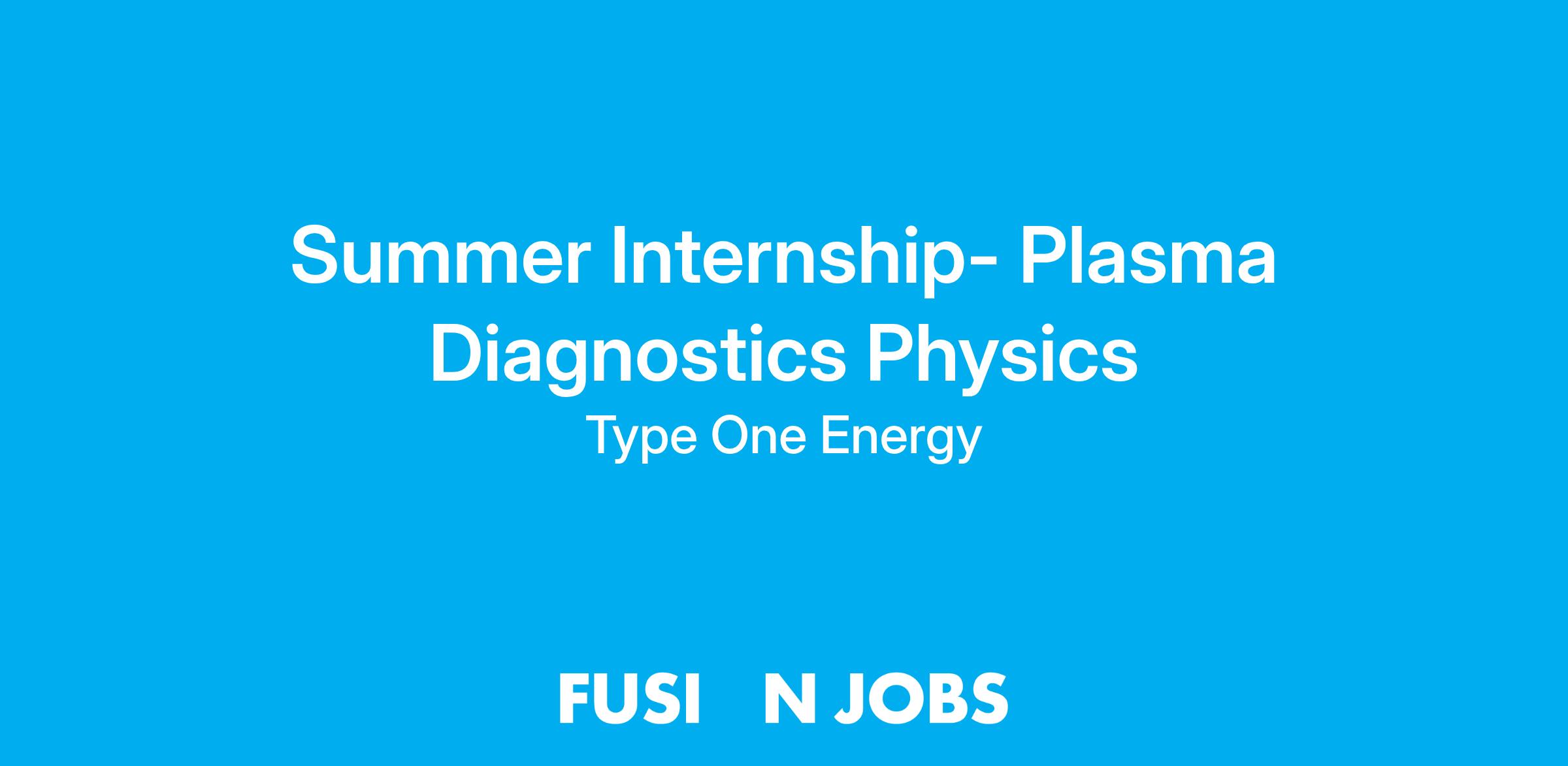 Type One Energy Group is seeking a summer intern in Plasma Diagnostic Physics to apply your education and experience in the development of plasma diagnostics for a new fusion energy device.