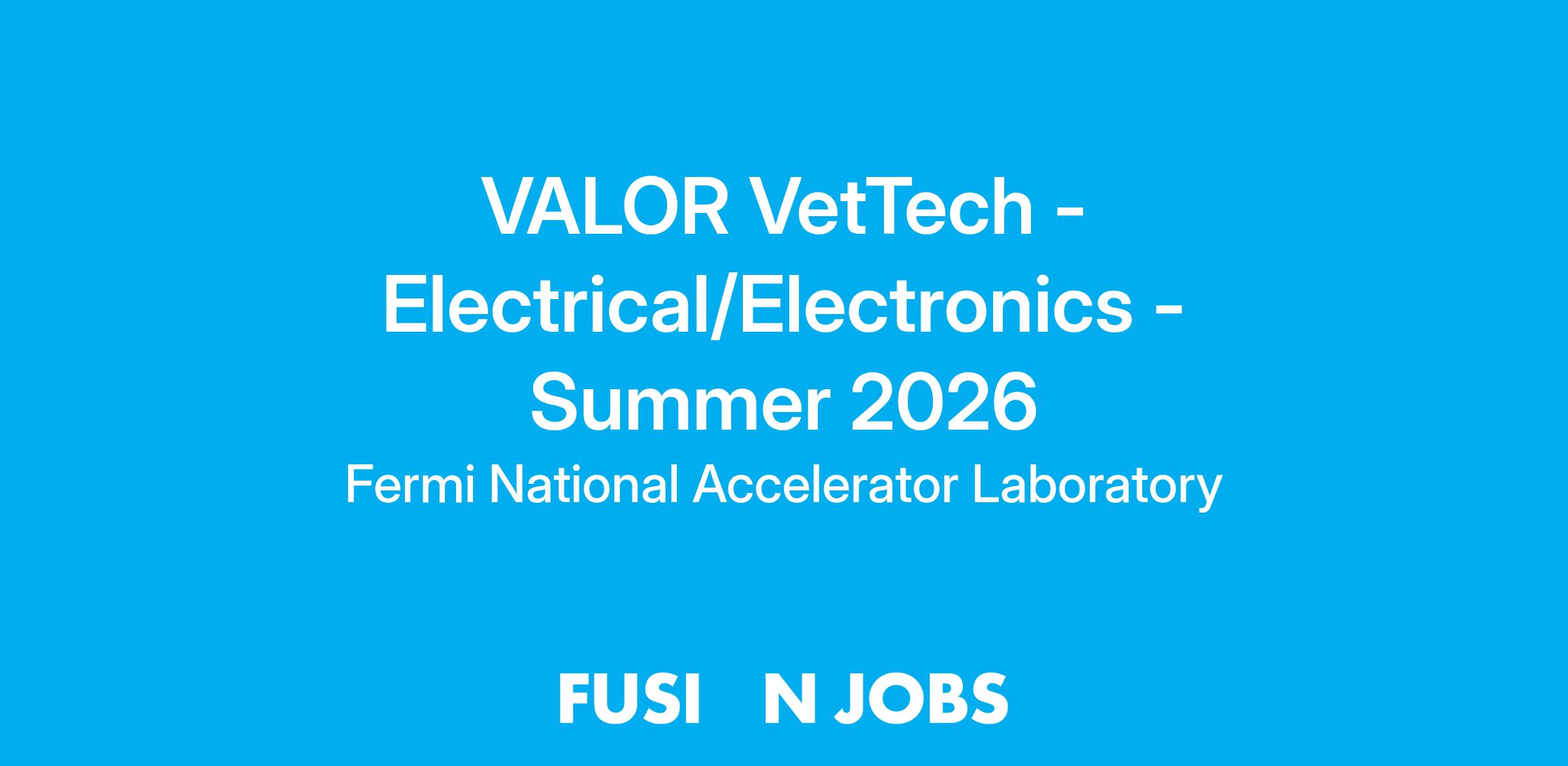 A VetTech Electrical / Electronics Intern provides routine technical support for assigned area; typically, an experiment or support group. Depending on the assigned area, fabricates, operates, tests, repairs, and/or modifies a variety of electronic equipment, systems and devices. Tasks are accomplished under direct supervision of a Fermilab employee and in cooperation with project teams, scientists, engineers, and support personnel and in accordance with established policies and procedures.