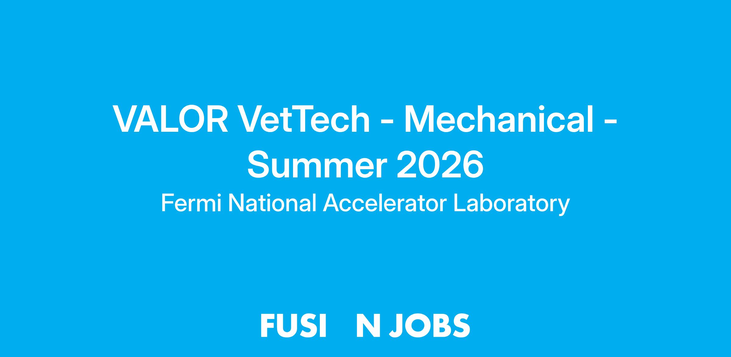 A VetTech Mechanical Intern provides routine technical support for assigned area; typically, an experiment or support group. Depending on the assigned area, fabricates, sets up, calibrates, operates, tests, repairs, and/or modifies a variety of mechanical equipment, systems and devices, or performs ESH duties including environmental surveys, waste disposal, and radiological surveys. Tasks are accomplished under direct supervision of a Fermilab employee and in cooperation with project teams, scientists, engineers, and support personnel and in accordance with established policies and procedures.